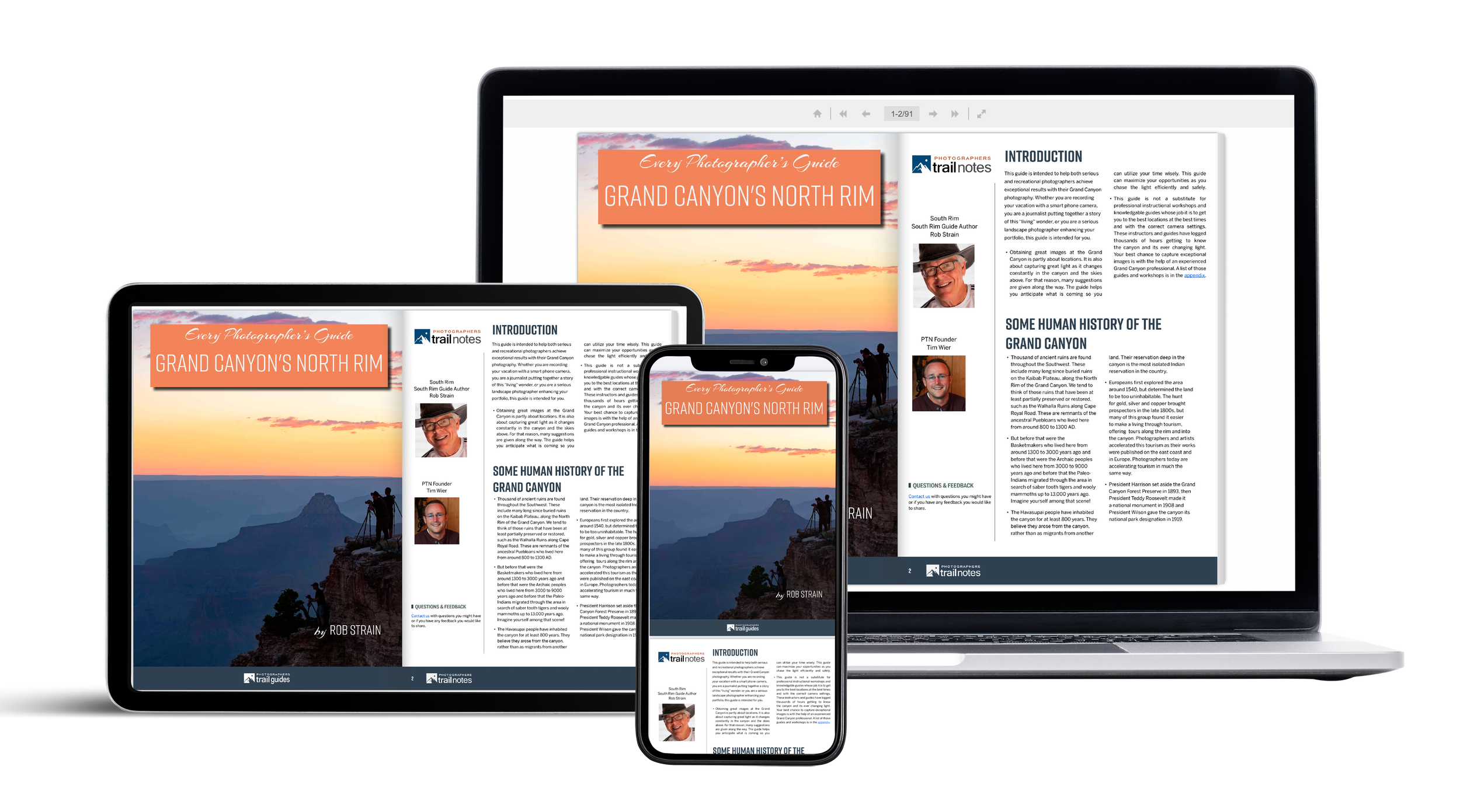 This 90-page guidebook leads you to multiple shooting locations at the three most common viewpoints and many less frequented locations at the North Rim of the Grand Canyon.